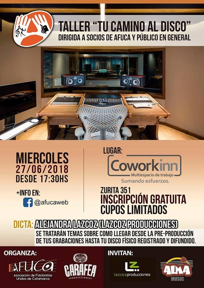 Cómo afrontar el camino del disco propio, desde la grabación a los aspectos legales y de registración necesarios para su lanzamiento y promoción en distintas plataformas son los temas que abordará el taller “Tu camino al disco”, dictado por Alejandra Lazcoz, de Lazcoz Producciones, una firma con más de diez años en el ambiente de la música.