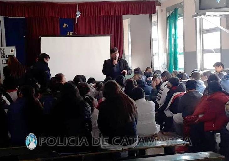 En la oportunidad, el personal policial abordó temáticas sobre adicciones tales como: alcoholismo, tabaquismo, drogas legales e ilegales, vicios tecnológicos, entre otros, que fueron desarrollados en las Escuelas Nº 294 “Provincia de La Rioja” de la Villa de Pomán, y Secundaria Nº 62 de la localidad de Siján.