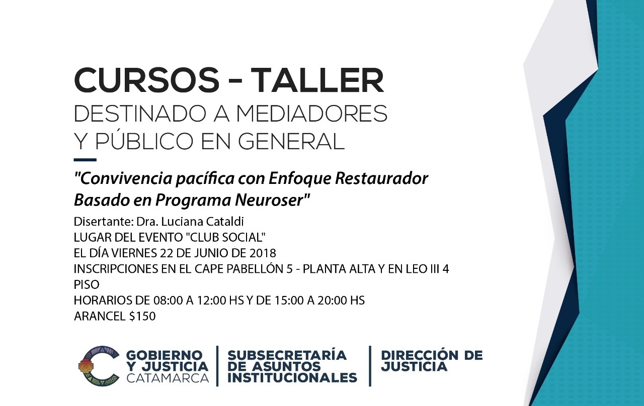 El evento es organizado por la Dirección de Justicia dependiente del Ministerio de Gobierno y estará destinado a mediadores y público en general.