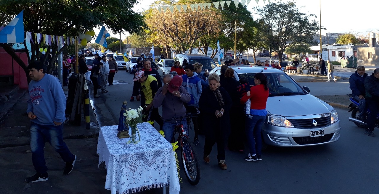 14:00 Salida en peregrinación de las Imágenes desde el hogar de la familia Rodríguez visitando los barrios Juan D. Perón, CGT y 50 Viviendas.