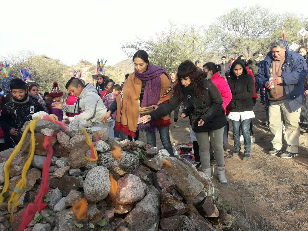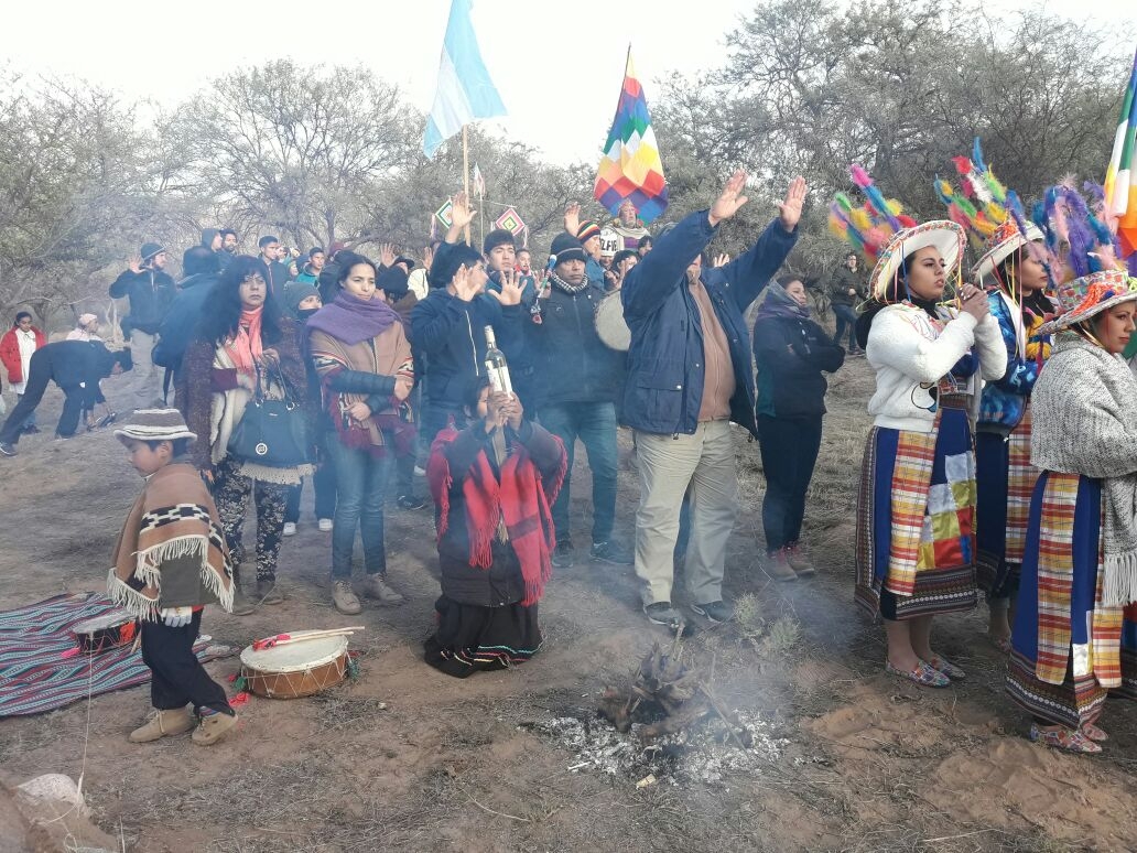 El jueves a las 6.00, la ceremonia dio inicio en una apacheta que se encuentra en el sitio arqueológico aguardando la aparición de los primeros rayos del sol para así, dar la bienvenida al nuevo Año Andino.