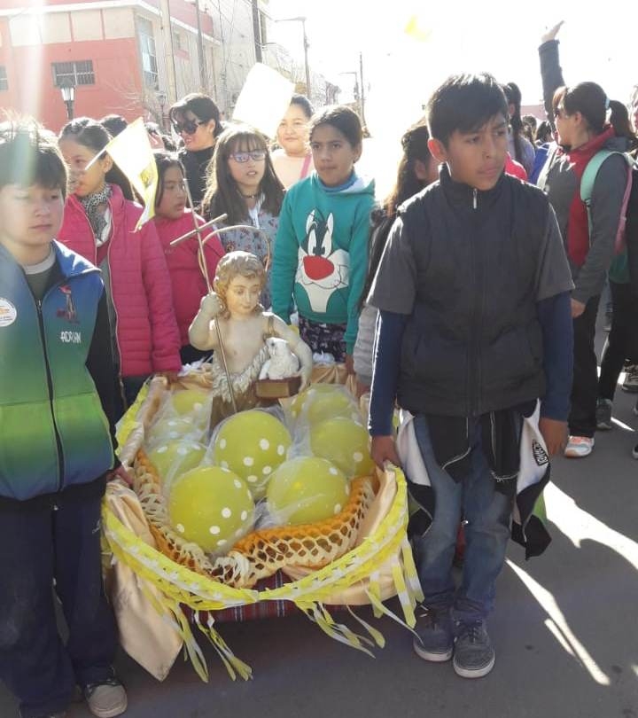 Esta manifestación de fe de los pequeños de la comunidad se denomina “San Juancito y los niños”. La imagen del Santo Patrono fue colocada en un carrito ornamentado para la ocasión, que fue llevado por los chicos. Estuvieron acompañados por sus familias, el Párroco y el Vicario Parroquial, Pbros. Humberto Carrizo y Carlos Rodríguez, respectivamente, y se contó con la participación del Coro de la Parroquia de Nuestra Señora de Fátima, de Fiambalá.