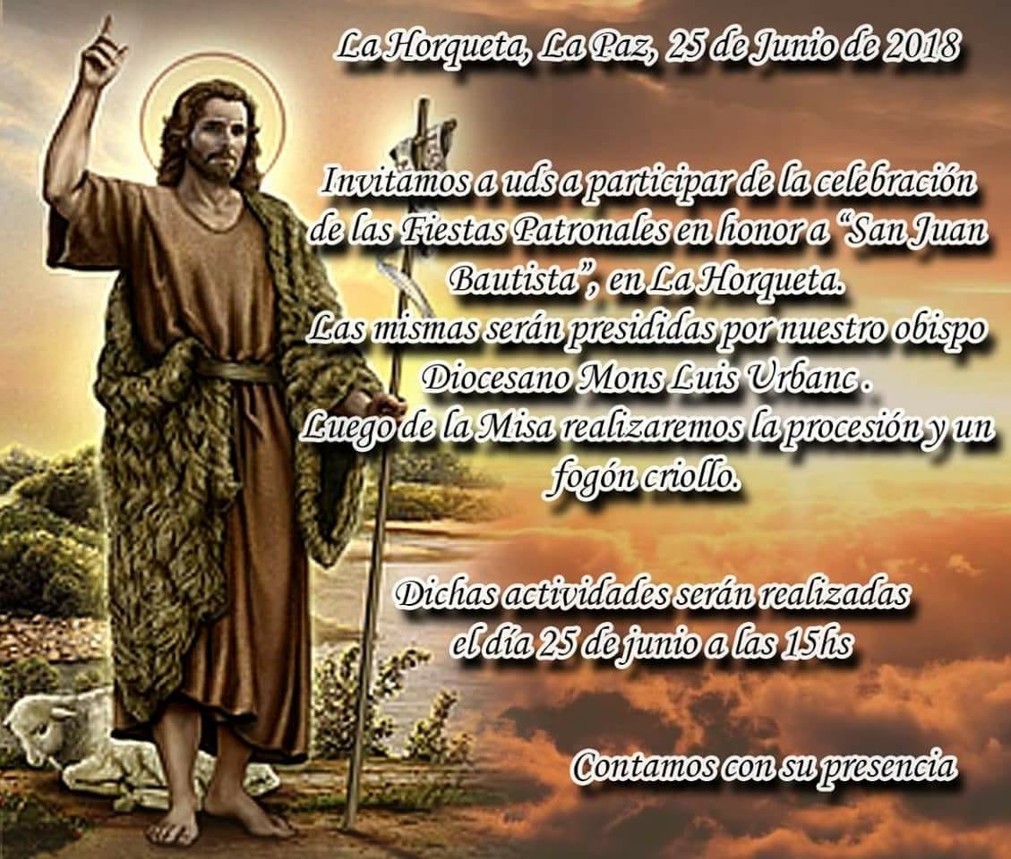 lunes, 25 de junio de 2018 02:23 lunes, 25 de junio de 2018 02:23 La ceremonia religiosa será presidida por el Obispo Diocesano, Mons. Luis Urbanč. Programa -15 hs. Celebración de la Santa Misa. -Posteriormente Procesión. -Fogón criollo.