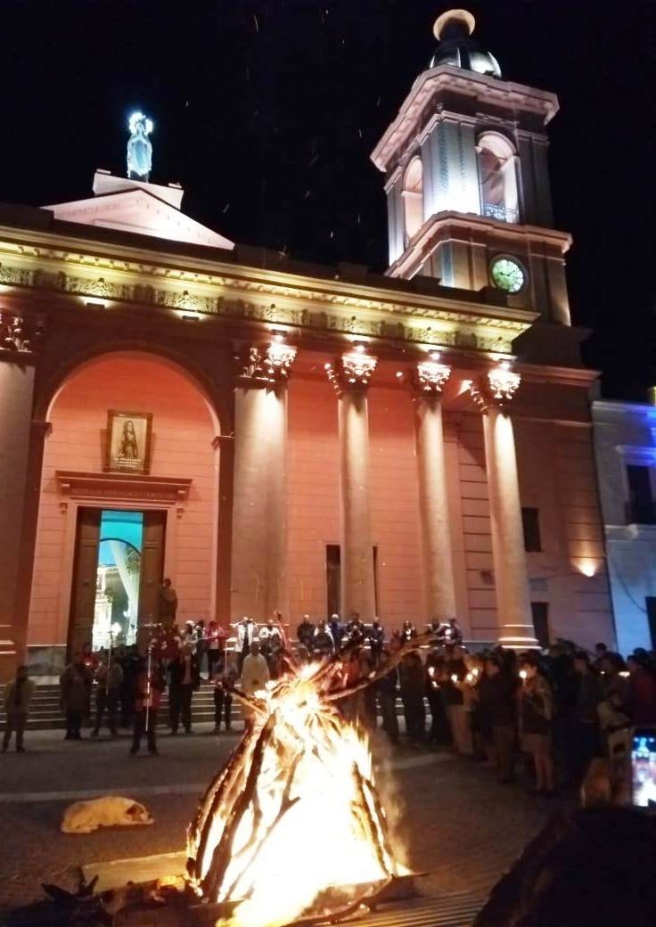 Al concluir la celebración eucarística, las campanadas anunciaron la salida de la procesión con la imagen de San Juan Bautista, que tuvo lugar alrededor de la plaza 25 de Mayo hasta el Paseo de la Fe, donde se encendió la fogata y luego se sirvió chocolate caliente con bollitos.