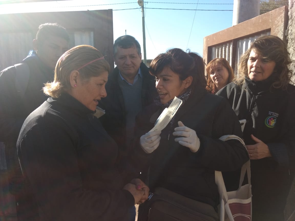 Después de finalizar el recorrido por el Barrio La Esperanza, en el Caps Altos de Choya, la referente del programa Cáncer de Cuello de Útero y Mamas, Dra. Marcela Escribano se dirigió a los agentes sanitarios y les dijo que “aprovecho que está el ministro para agradecerles; porque son incansables, tienen mucho compromiso y muy buena conexión con la gente. Gracias al trabajo de ustedes acompañando al programa de cáncer, estamos barriendo la zona norte y esos números nos van ayudar en la prevención”.