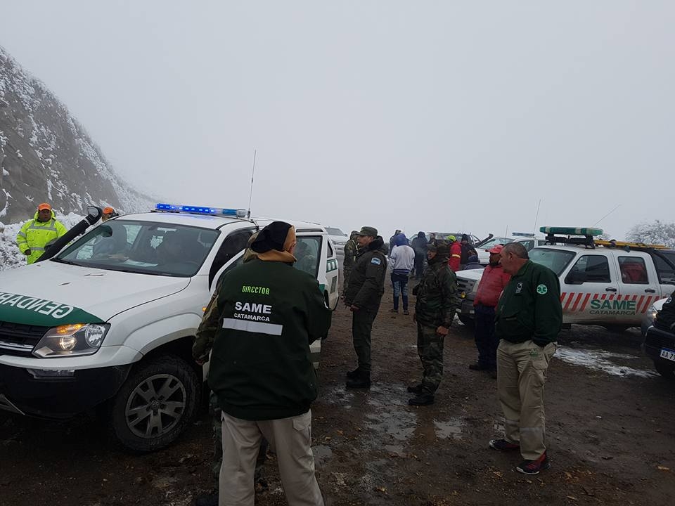 Mientras tanto Bomberos Voluntarios de Tinogasta, Poman y Andalgalá más Defensa Civil de Fiambala en 4 móviles se trasladaban al lugar con provisiones, elementos de logística, abrigos y montan una cadena de comunicación.