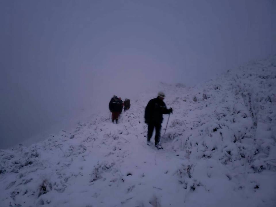 Hubo un trayecto de 13km los cuales fueron muy difíciles por el congelamiento y por la caída de nieve por eo cual se tubo que proceder a colocar cadenas para nieve a toda las unidades de rescate.