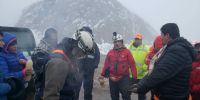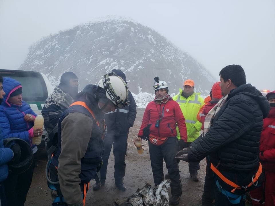 Esto lo realiza el grupo Kuntur con los y baqueanos quienes también les brindan cafe caliente, agua, abrigo y comida. Se procede a avisar a la base para consultar la posibilidad de un posible rescate aéreo.