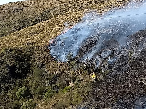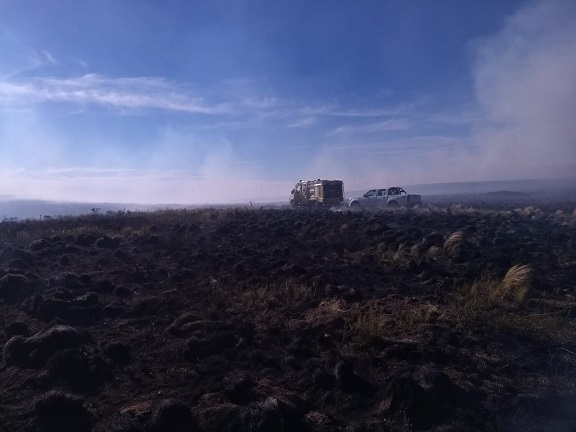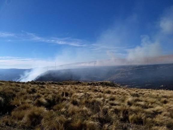 Las condiciones de trabajo estaban dadas con muchas ráfagas de viento, por lo que el incendio se propagó rápidamente y consumió alrededor de 7 hectáreas con pastizal de altura.