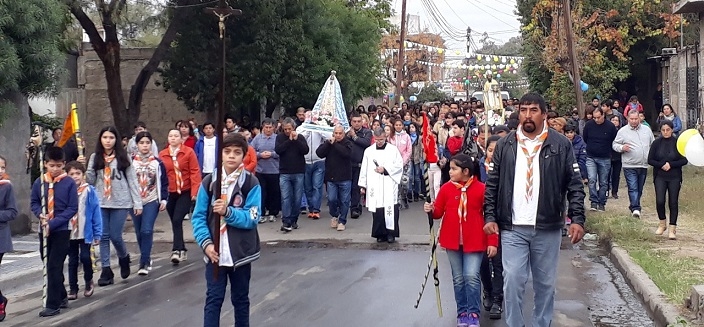 A horas tempranas, cientos de fieles, acompañados por el párroco, Pbro. Héctor Salas, peregrinaron desde el templo ubicado en el barrio La Viñita hasta la Catedral Basílica y Santuario Mariano.