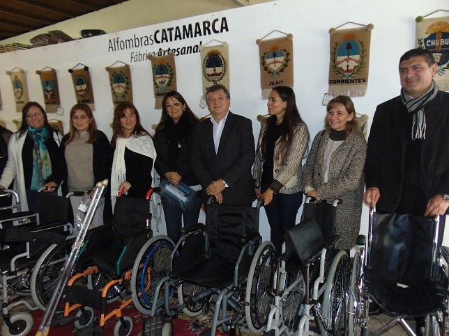 La entrega consistió de cuatro sillas de rueda Standard, dos andadores y dos pares de muletas; y además de cartelería en braille.