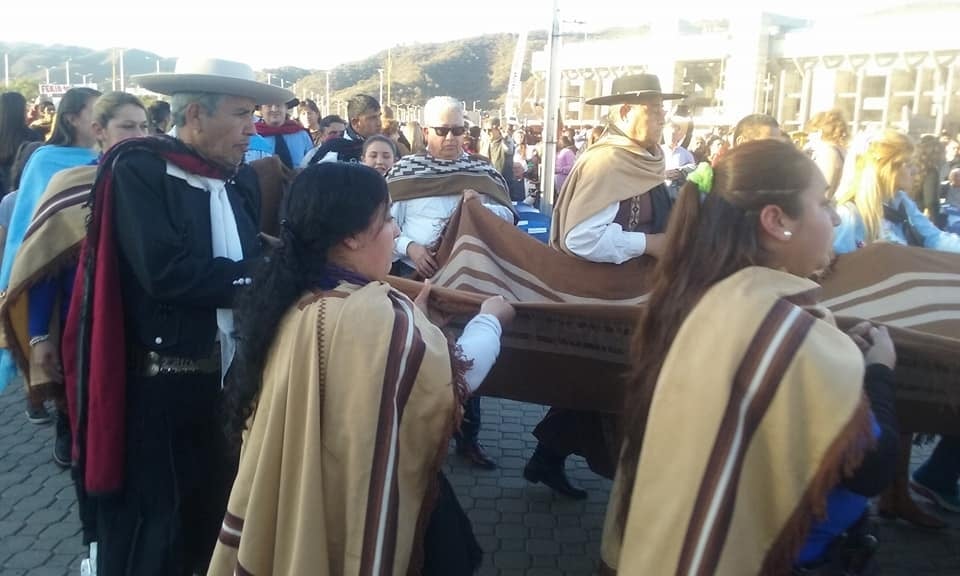 Previo al acto inaugural se concretó la ya tradicional marcha "Al Poncho con poncho", recorrido en el que todos los participante, caminan luciendo la prenda tradicional de la provincia.