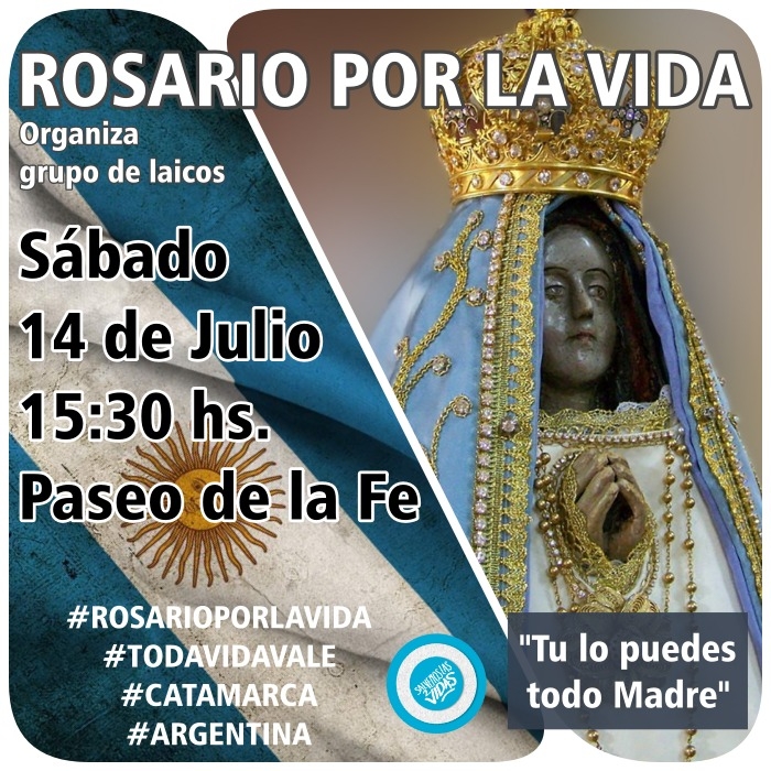 Como en otras oportunidades, el grupo de laicos invita al rezo del Santo Rosario por la Vida, que se realizará el sábado 14 de julio a las 15.30, en el Paseo de la Fe.