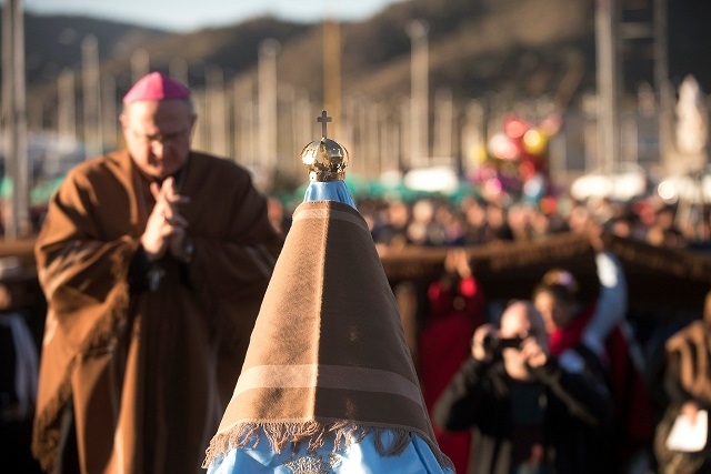 En la tarde del viernes 13 de julio, bajo un sol radiante, la bendita Imagen de nuestra Madre Morena, llevada en brazos por el Obispo Diocesano, Mons. Luis Urbanc, encabezó la caminata “Al Poncho con poncho”, que marcó el inicio de la fiesta mayor de Catamarca, con la presencia de la Gobernadora, Dra. Lucía Corpacci; el Gobernador de Santa Fe, Miguel Lifschitz; el Intendente de Capital, Lic. Raúl Jalil; jefes comunales del interior provincial, legisladores nacionales y provinciales y demás autoridades.