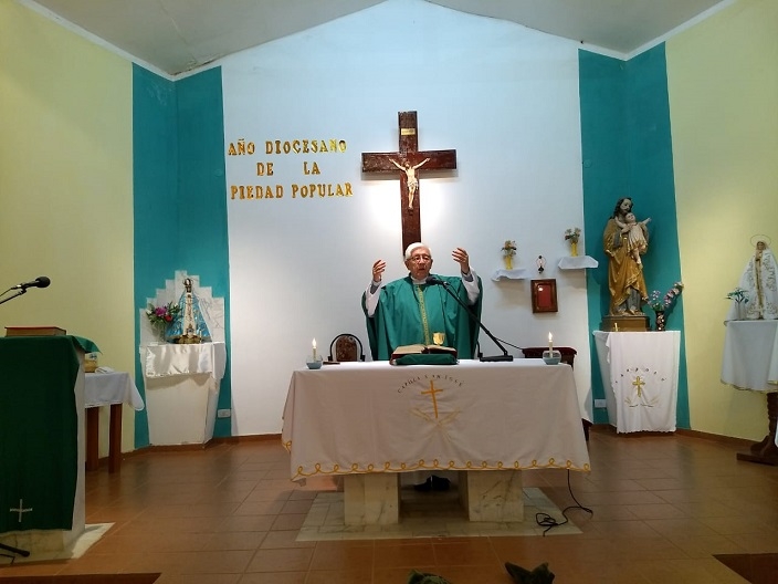 La Santa Misa estuvo presidida por el Presbítero Carlos Malagueño quien instó en la homilía a "seguir el testimonio de vida de San Pantaleón", al tiempo que bregó por la "no violencia en sociedad, ya que la violencia muchas veces está dentro de uno mismo".