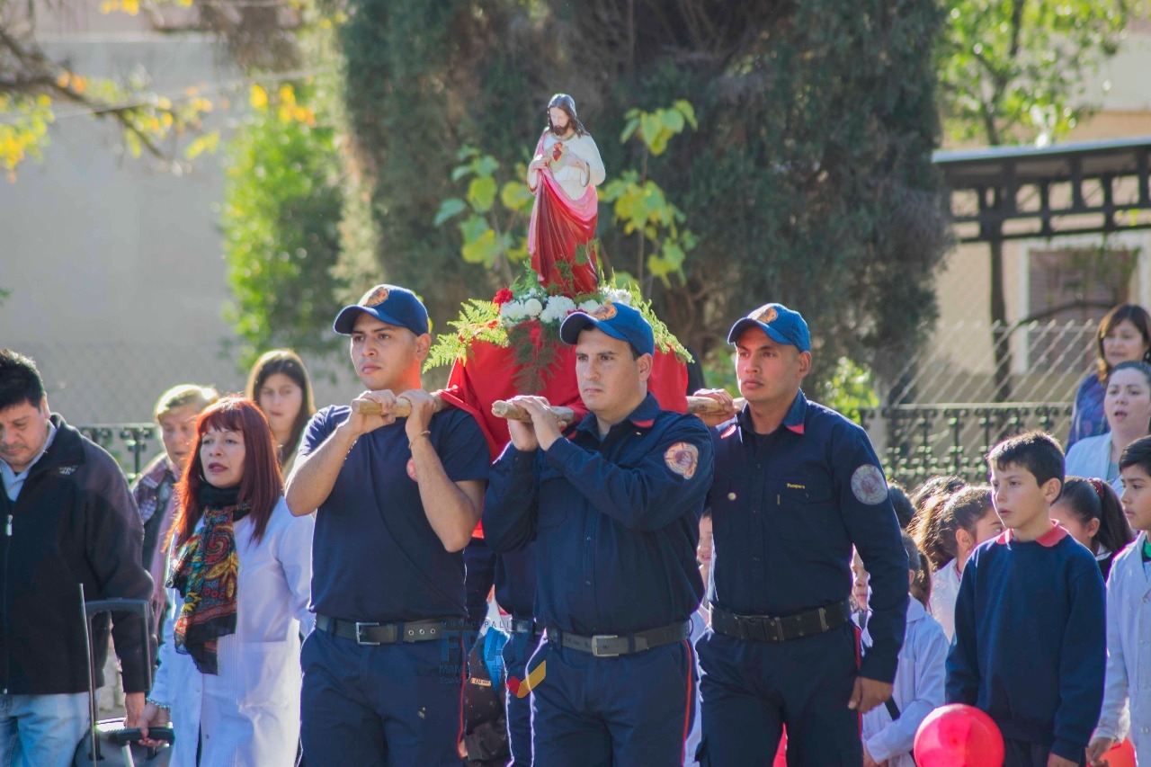 Participaron de esta manifestación pública de fe, los fieles devotos de la comunidad parroquial, el intendente, Dr. Guillermo Ferreyra, entre otras autoridades del medio, alumnos y docentes, los Bomberos Voluntarios, quienes portaron la Imagen del Sagrado Corazón de Jesús, acompañados por el párroco, Pbro. Juan Olmos.
