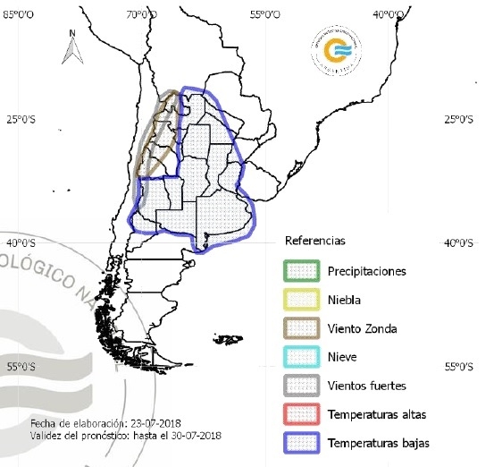 El martes 24 no se descarta la ocurrencia de viento zonda en la zona precordillerana de Jujuy y precordillerana de Salta y Catamarca. A partir del jueves 26 y especialmente durante el viernes 28, se espera viento zonda en las zonas precordilleranas de Jujuy, Salta, Catamarca, La Rioja y San Juan, incluso en el centro de Jujuy, centro de Salta y hasta el oeste de Tucumán.