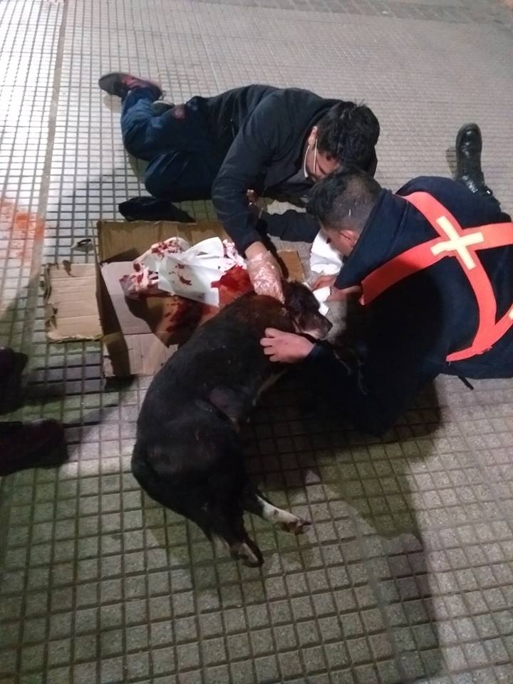 Según la información, el perrito protagonizó una pelea callejera y sufrió gran pérdida de sangre, por lo cual le brindaron auxilio y luego fue trasladado a la veterinaria.