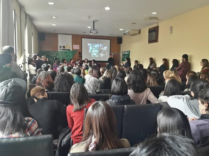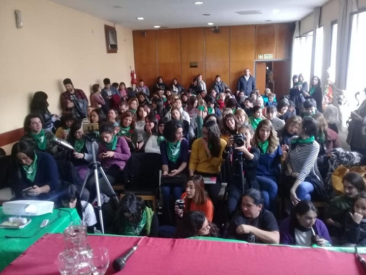 El salón estuvo colmado, y luego las participantes llevaron a cabo un pañuelazo en la Plaza 25 de Mayo.