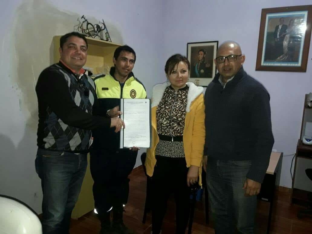 Por Bomberos Voluntarios, estuvo el coordinador de Seguridad Vial, Raúl Gómez, y Enzo Medina. Recibieron por parte del Concejo Deliberante, el presidente Alberto Oyola y la concejal Melissa Herrera.
