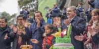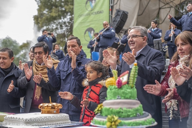 Antes del sorteo, el jefe comunal junto al ministro de Gobierno, Marcelo Rivera, y el secretario de la Vivienda, Fidel Sáenz, realizaron el festejo central de la fiesta con las mejores tortas presentes.