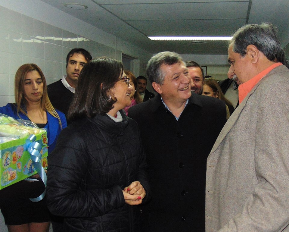 La gobernadora Lucía Corpacci y el ministro de Salud Ramón Figueroa Castellanos, acompañados por el director de la Maternidad Provincial, Daniel Ovejero, visitaron a los padres del bebé.