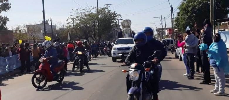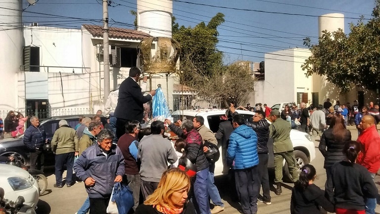 Las calles de la capital riojana se vieron inundadas de gente que la aguardaba con entusiasmo y emoción para saludarla a su paso; caminando, en bicicletas, motos y automóviles se sumaron a esta manifestación de fe, donde los gestos de amor se multiplicaban a cada segundo.