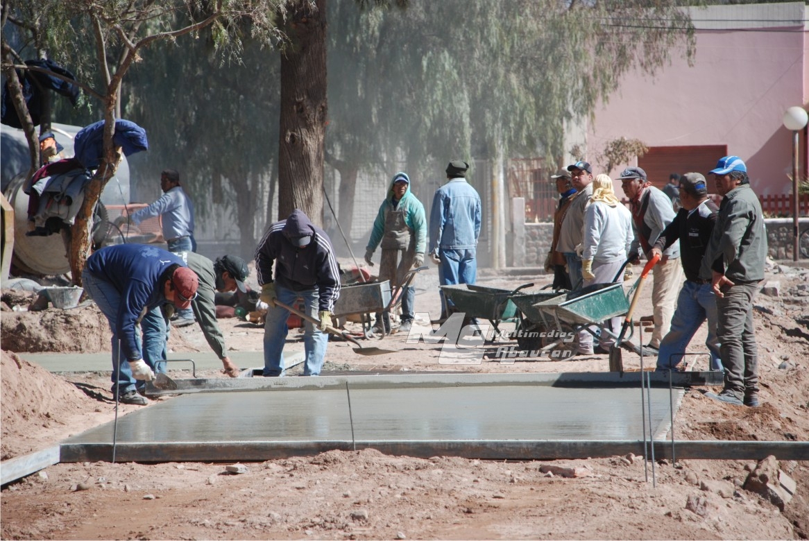 Para hacer posible esta importante labor, diferentes cuadrillas de obreros municipales y privados trabajan en doble turno para concretar lo que será la nueva plaza que Fiambalá ofrecerá a la gente local y el incesante turismo que arriba de manera continua.
