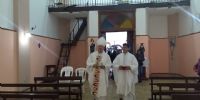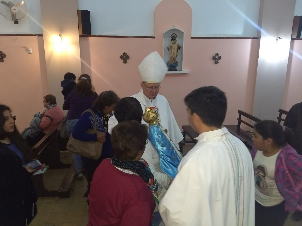 Luego, ingresó con el Obispo Diocesano Monseñor Luis Urbanc, donde lo esperaban peregrinos del interior.