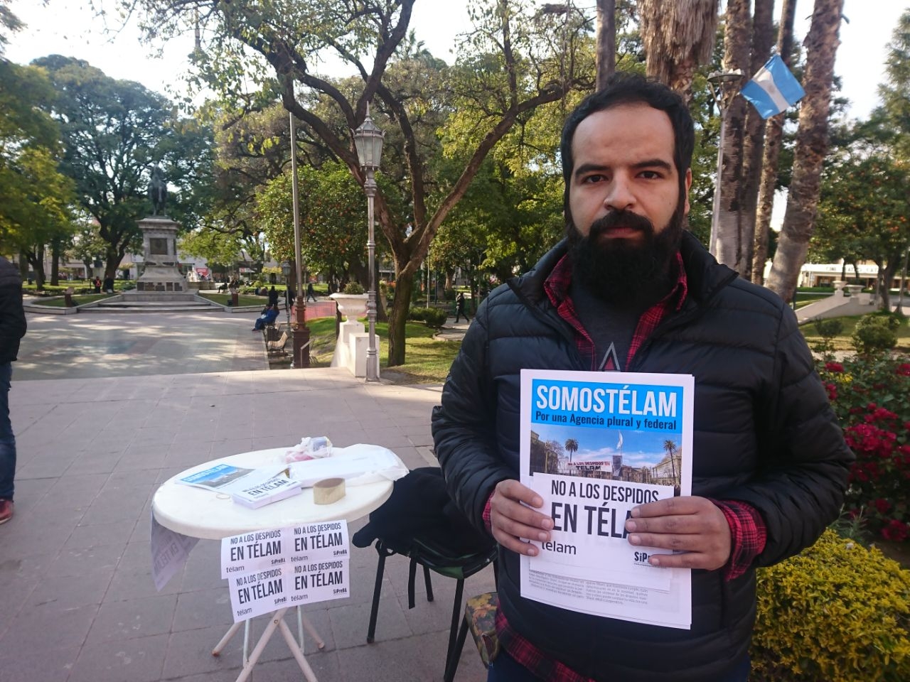 Gonzalo Pérez, despedido de Télam en Catamarca, se sumó a la protesta nacional y manifestó que “esperamos que la sociedad conozca lo que están viviendo los medios, cómo se está recortando en los distintos sectores del Estado, y cómo nos toca a nosotros desde la agencia Télam estas políticas de ajuste”.