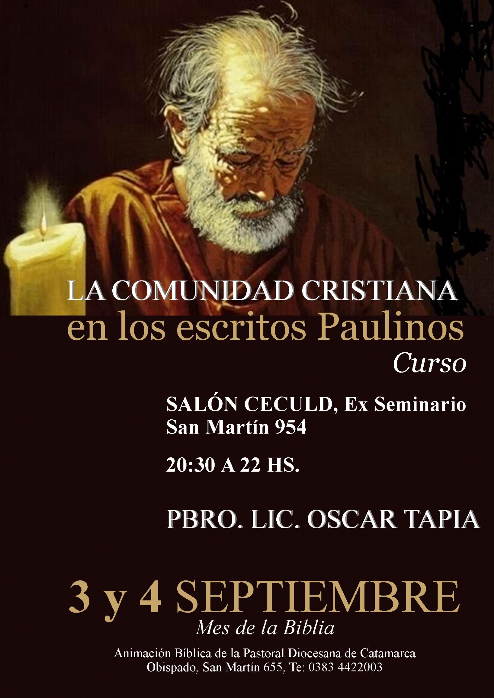 Como todos los años, durante septiembre, la Pastoral Bíblica ofrece a la comunidad un curso bíblico, entendiendo la conveniencia de que a toda persona no sólo le basta leer la Sagrada Escritura, sino que se requiere desentrañar la Palabra de Dios para encontrar a Jesucristo vivo y, por el Espíritu que inspira la Palabra, entrar en comunión con el Padre.
