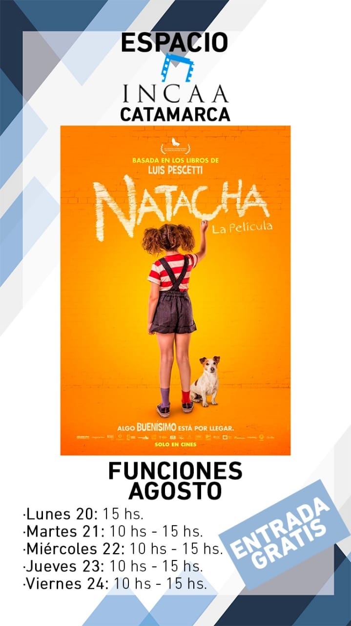 Sumándose a los festejos de agosto por el Mes del Niño, se brindarán funciones de la película infantil “Natacha”, con entrada libre y gratuita para escuelas de nivel Primario y público en general.