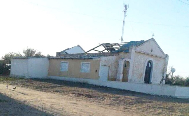 Uno de los edificios más afectados fue la Capilla San Roque. Su techo prácticamente fue arrancado de cuajo. Lamentablemente pasaron 10 meses y el edificio sigue igual, o en peores condiciones.
