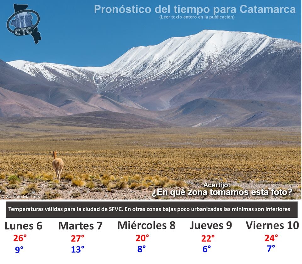 Será el día en el que descenderá la temperatura en toda la provincia gracias a la continuidad del viento sur. En muchos sectores de las regiones Este y Centro habrá bastante nubosidad baja cubriendo el cielo, especialmente en zonas de Yungas, como por ejemplo el valle de Aconquija, Las Chacritas, Balcozna, Singuil, Alijilán, Guayamba, etc.