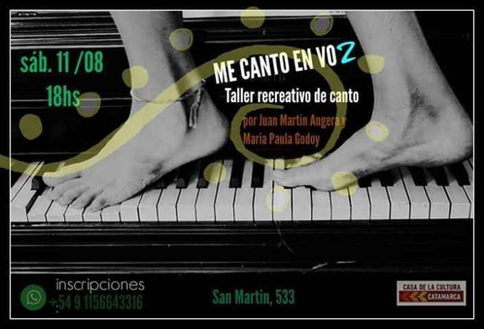 Este taller recreativo de canto dirigido a adultos y jóvenes que les guste cantar, sabiendo hacerlo o no, está coordinado por los músicos María Paula Godoy y Juan Martín Angera, quienes ofrecen esta experiencia basada en actividades lúdicas de canto individual y grupal, donde la única consigna es expresarse con sentimiento y libertad.