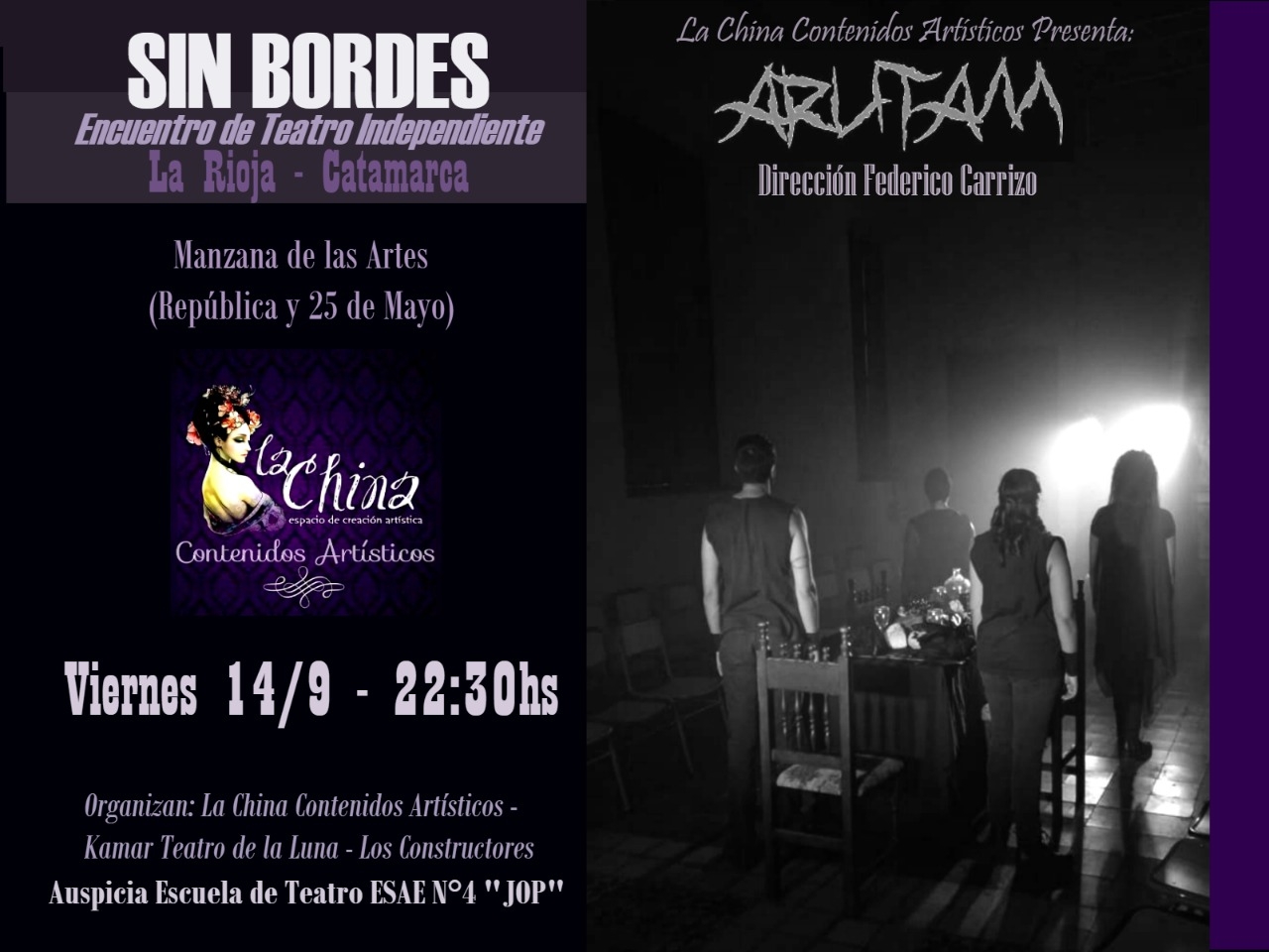 La función de Arutam será este viernes 14 a las 22.30 hs. También forman parte del festival dos obras del grupo riojano Kamar Teatro de la Luna: “Canción de Cuna para Refugiad@s” que se presentará el sábado 15 a las 22 hs, y “Panóptico”, el domingo 16 a las 20 hs.