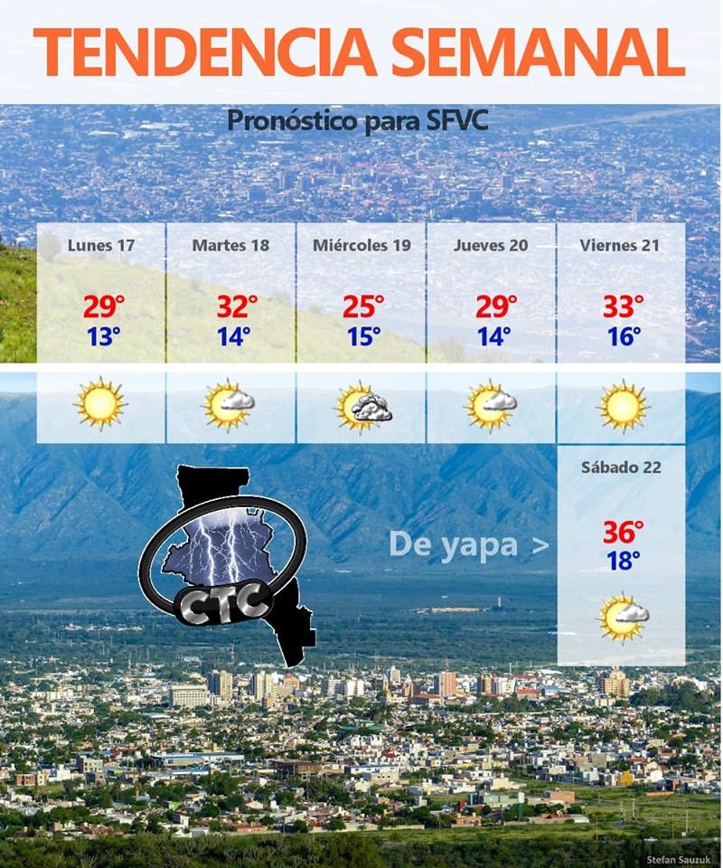 De yapa, podemos anticipar que el sábado la temperatura máxima en las zonas bajas de la provincia (como SFVC) podría alcanzar los 36°.