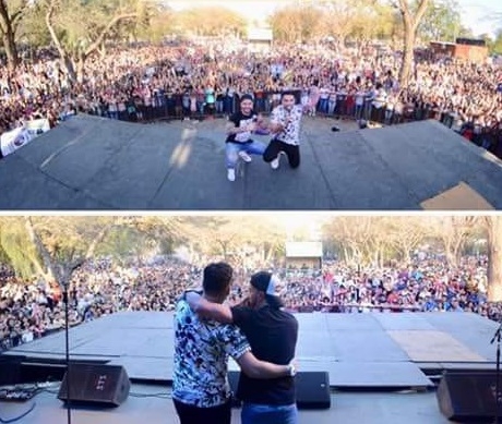 La banda cordobesa realizó un amplio recorrido de sus temas para todos los estudiantes y familias que se dieron cita en el paseo público chacarero.