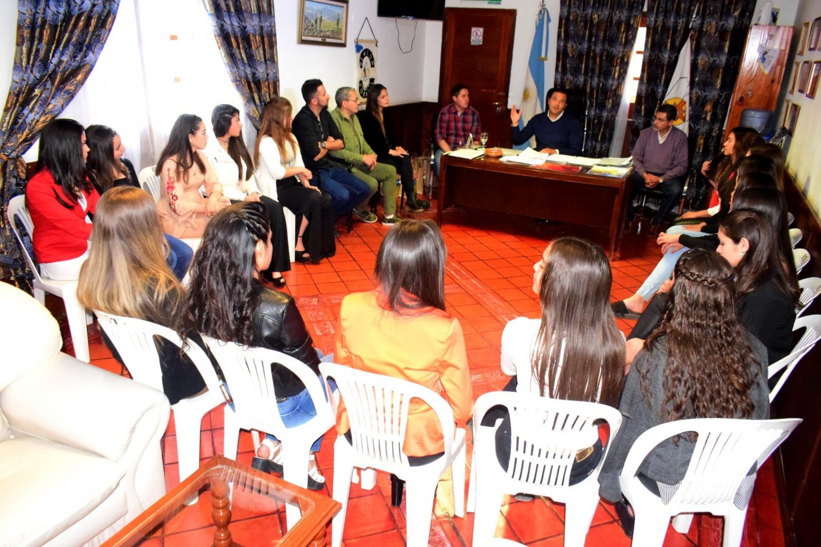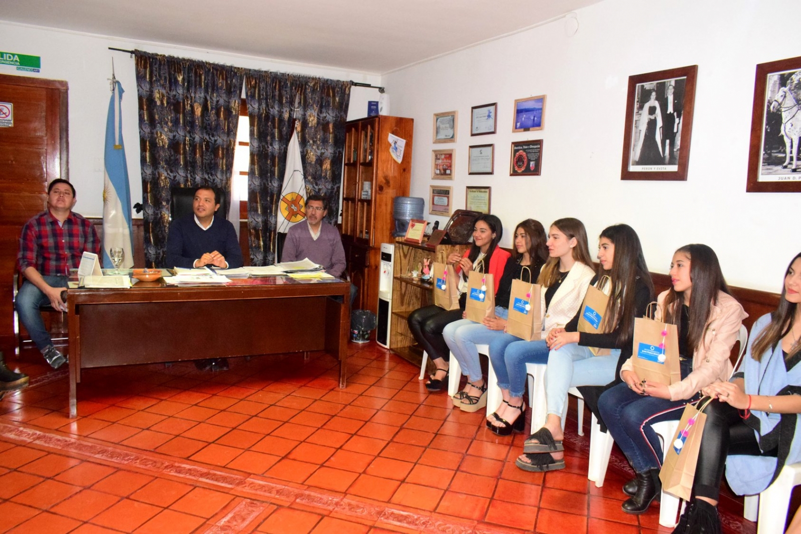 En la previa a lo que será hoy la elección de la Reina de los Estudiantes Provincial, las 16 reinas de cada departamento, fueron recibidas por el intendente, C.P.N Juan Pablo Sánchez, en su despacho, junto al coordinador, Gustavo Barrionuevo, el diseñador catamarqueño, Atilio Páez y el jefe de la Juventud del municipio, César Mamani.