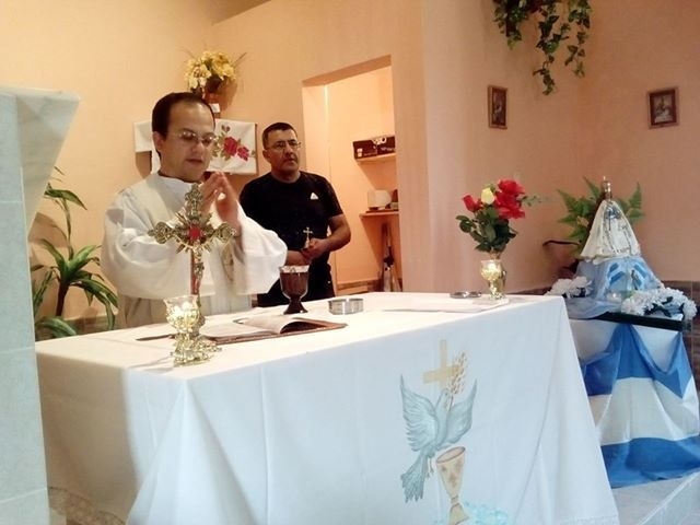 Posteriormente, se celebró la Santa Misa, presidida por el Vicario Parroquial, Pbro. Martín Melo, luego de la cual, a través de una pequeña cartilla, se dio a conocer la historia original de la Imagen y la cercanía con la familia Ramírez.