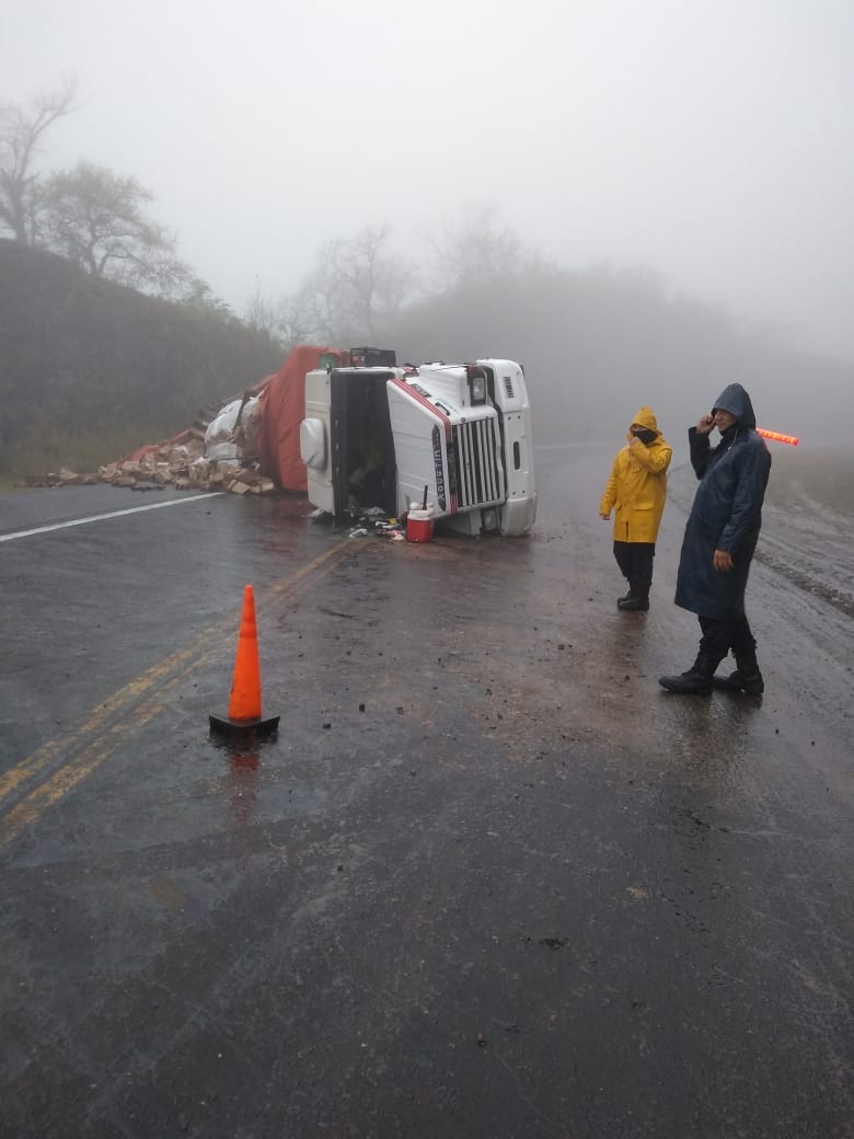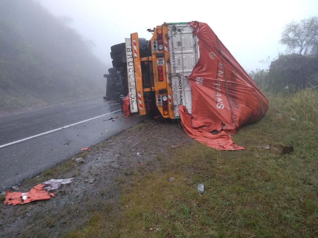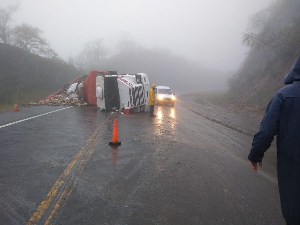 Se pide a los conductores transitar con precaución en la ruta nacional 38, a la altura de la Cuesta del Totoral (Km. 647), no sólo por el siniestro vial sino también por las condiciones climáticas.