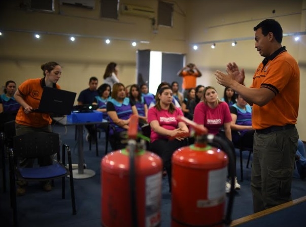 La capacitación realizada en el salón auditorio del anexo Perú, estuvo a cargo del ingeniero en siniestros Walter Zárate quien disertó sobre incendio, sismo y medidas a tomar en cada caso.