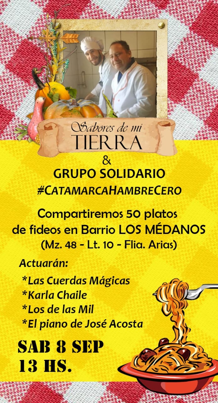 “Sabores de mi tierra” elaborará fideos caseros que serán compartidos este sábado 8 de septiembre, a partir de las 13 horas, en la casa de la familia Arias, ubicada en Manzana 40, Lote 10, del barrio Los Médanos.