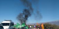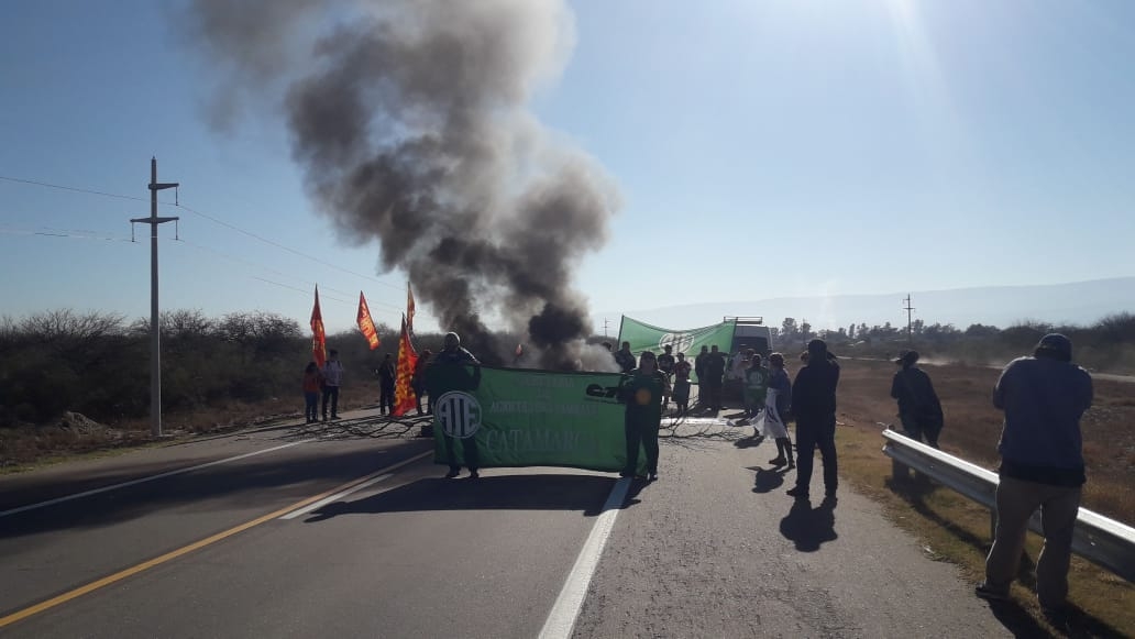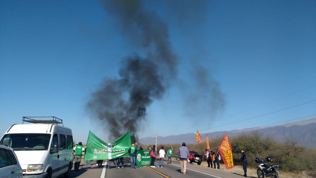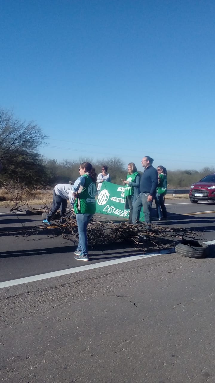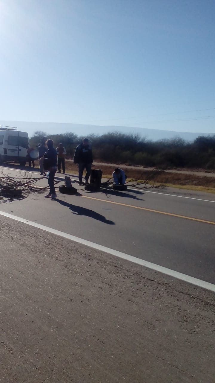 En la mañana de hoy, los trabajadores se manifiestan con un corte total sobre la ruta nacional 38 a la altura de río Ongolí, donde cada media hora dejan pasar a los vehículos.