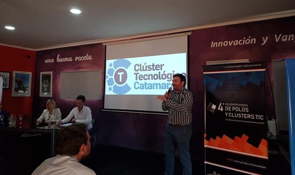 Tras enumerar las características del sector tecnológico en Catamarca, Dusso contó la articulación público-privada que se generó con emprendedores del sector para desarrollar el Cluster Tecnológico Catamarca, un plan estratégico que permita promover al sector y contar con un espacio físico propio. “El proyecto obtuvo financiamiento del BID, a través del Ministerio de Producción de la Nación y hoy es una realidad”, contó el funcionario catamarqueño.