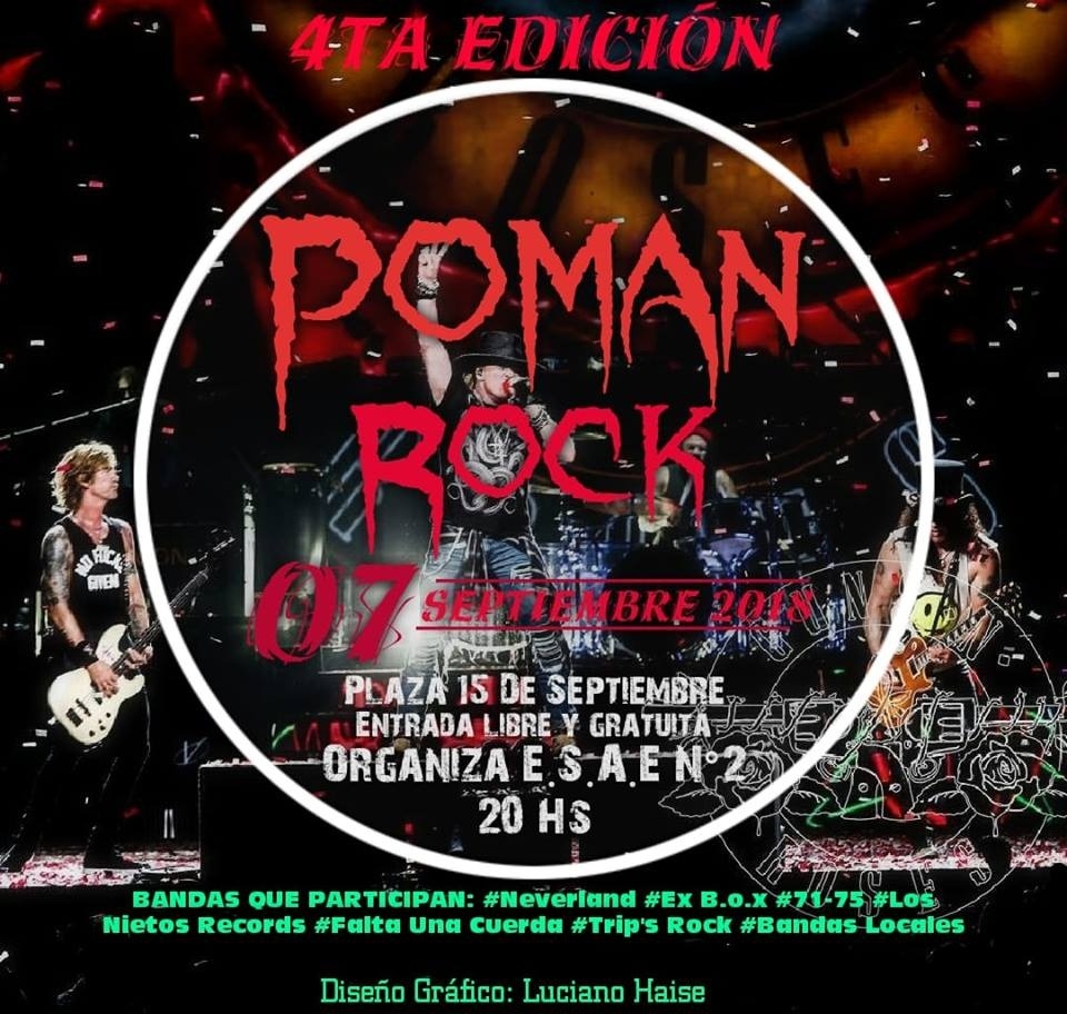 La directora de la institución, Iris Pacheco, manifestó que “este evento es escolar y ha surgido como un proyecto del departamento de música, ya lo institucionalizamos y lo hemos puesto en la semana de festejos del aniversario de Pomán, esta idea ha surgido, porque este género musical ha grupos de la escuela les gusta o han incursionado en ella, cada vez se van sumando mas, tenemos la banda de la escuela que va a estar participando”.