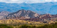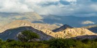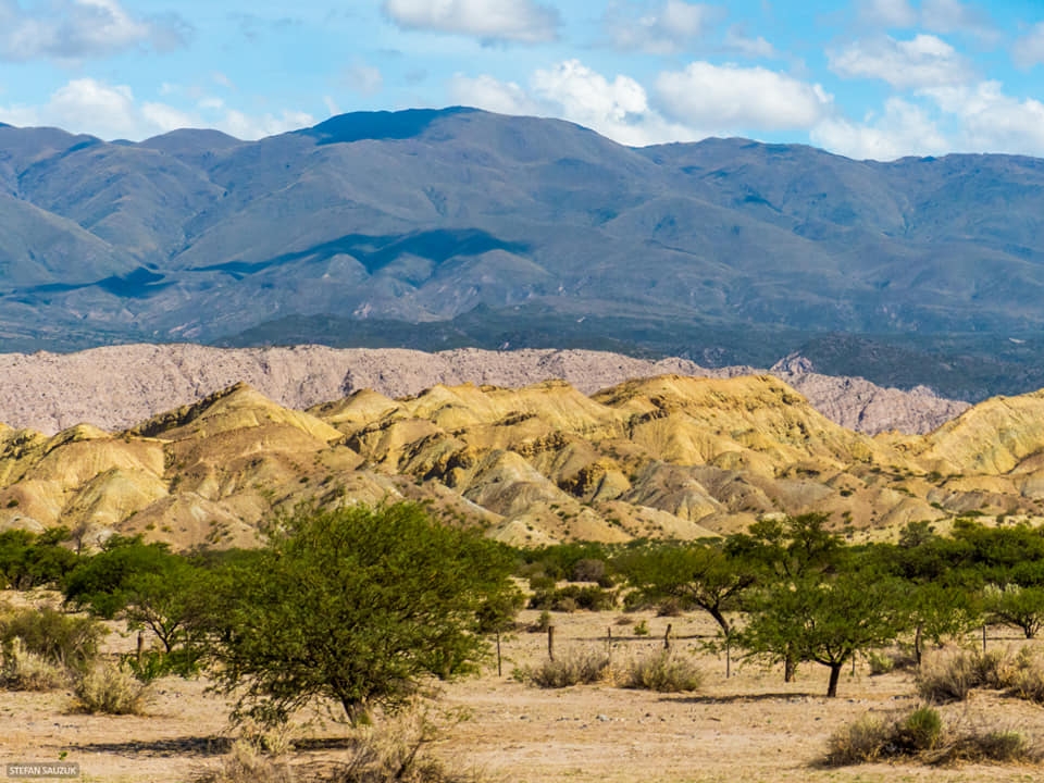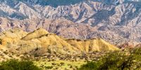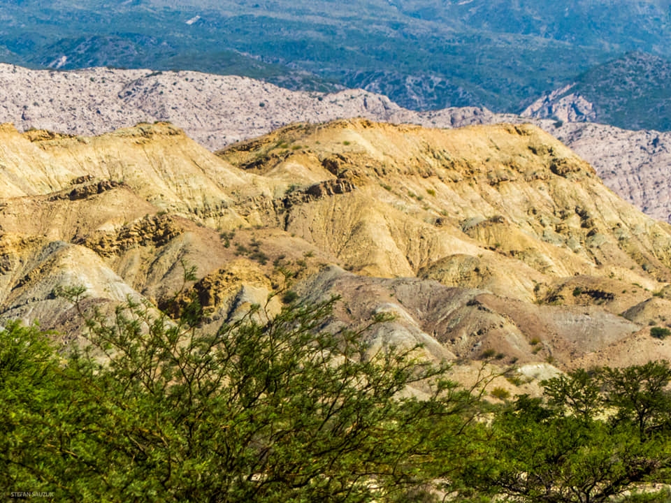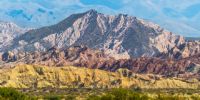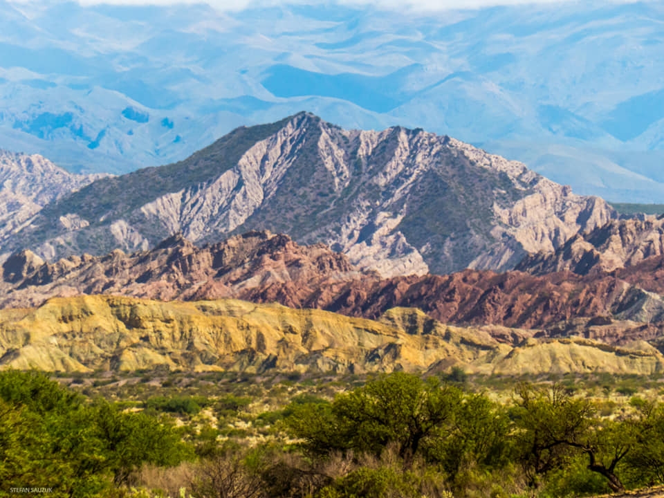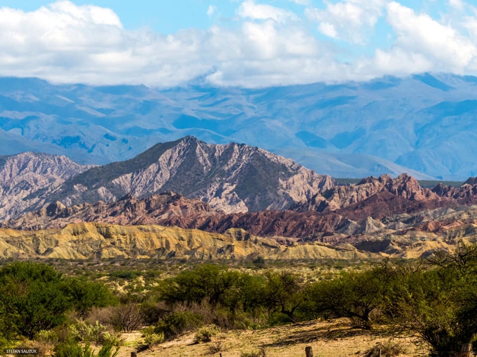 Increíbles cerros de colores rodeados de monte, con inmensos abanicos aluviales surgidos de las sierras que enmarcan el Valle del Yokavil, tomados desde la RN 40.