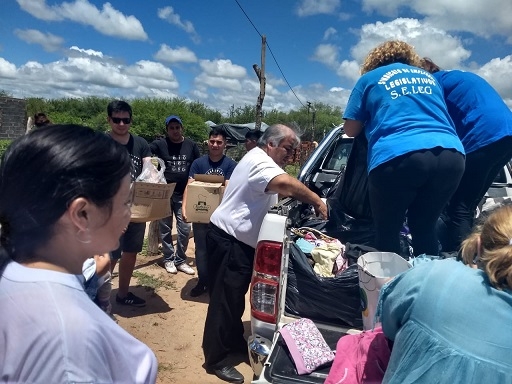Y una tarea conjunto con la Agrupación realizaron entrega a los damnificados del temporal pasado.