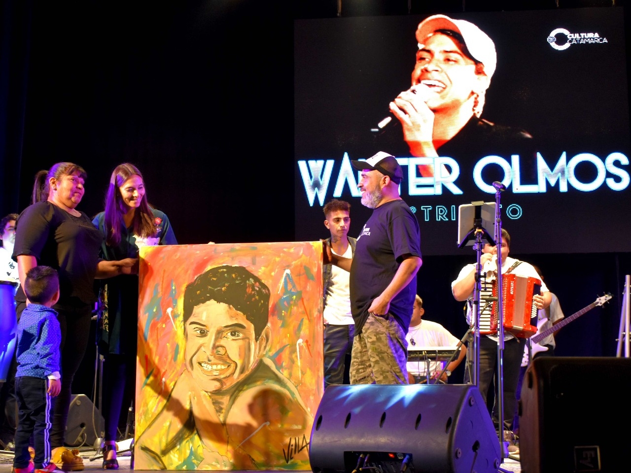 Mientras transcurría el homenaje, el artista plástico Marcelo Villafáñez, realizaba un retrato de Walter Olmos, el cual fue entregado a la madre del extinto cantante. Noemí Nieto recibió el cuadro de manos de la secretaria de Cultura, Jimena Moreno, y al agradecer el gesto aseguró que la obra permanecerá en el living de su casa, en la que su hijo vivió su niñez y adolescencia.