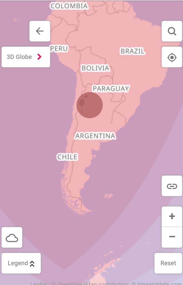 Como podrán ver, si están en zonas de Yungas (o en sus inmediaciones), la nubosidad puede obstaculizar el eclipse así que si están en Aconquija, Singuil, Balcozna, La Merced, Alijilán o en zonas cercanas, probablemente se lo pierdan.